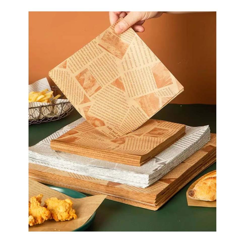 กระดาษห่ออาหารแบบพิมพ์ลายเอง ขนาด 12x12 นิ้ว หนา 50 แกรม ป้องกันคราบไขมัน สำหรับห่อแซนวิช เดลี่ แฮมเบอร์เกอร์ กระดาษเคลือบกันน้ำมันเกรดอาหาร