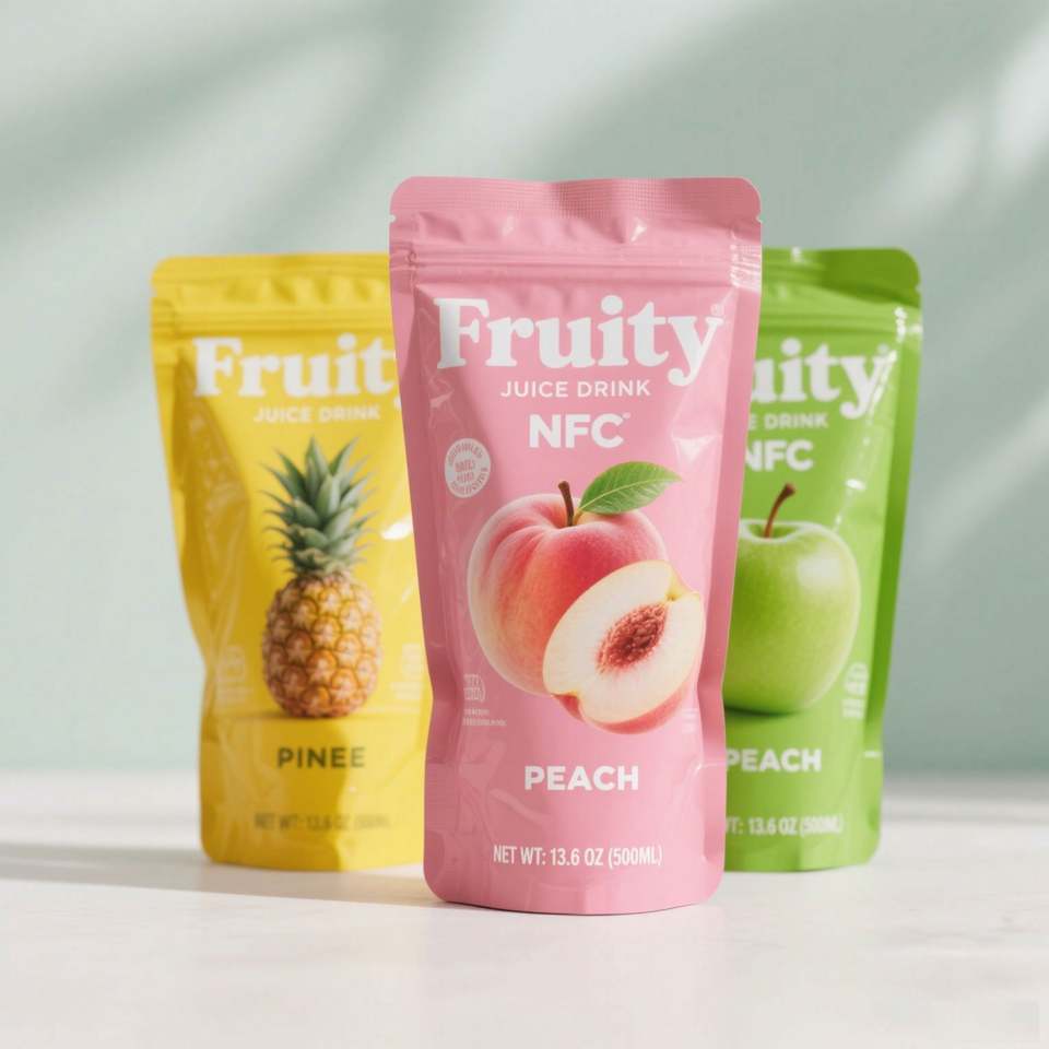 ซองน้ำผลไม้แบบมีพวยกา ขนาด 250 มล. 350 มล. 500 มล. 1 ลิตร พิมพ์ลายตามสั่ง ใช้ซ้ำได้ เป็นมิตรกับสิ่งแวดล้อม ปลอดภัยสำหรับอาหาร ใช้หมึกถั่วเหลือง ย่อยสลายได้ มีตัวอย่างฟรี