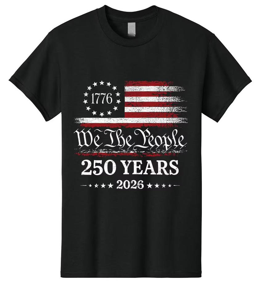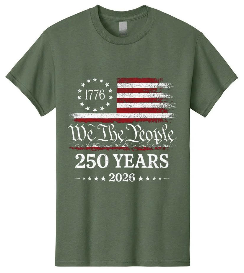 Men's 4th July 250th Anniversary USA Short Sleeve 100% Cotton Eco-Friendly Silk Screen Printed T-Shirt
