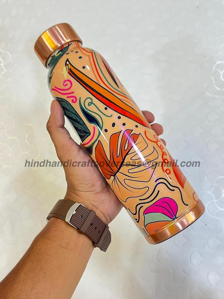 ขวดน้ำทองแดงบริสุทธิ์950มล. แบบพิมพ์ลายได้ตามต้องการภาชนะใส่เครื่องดื่มพลาสติกส่วนบุคคล