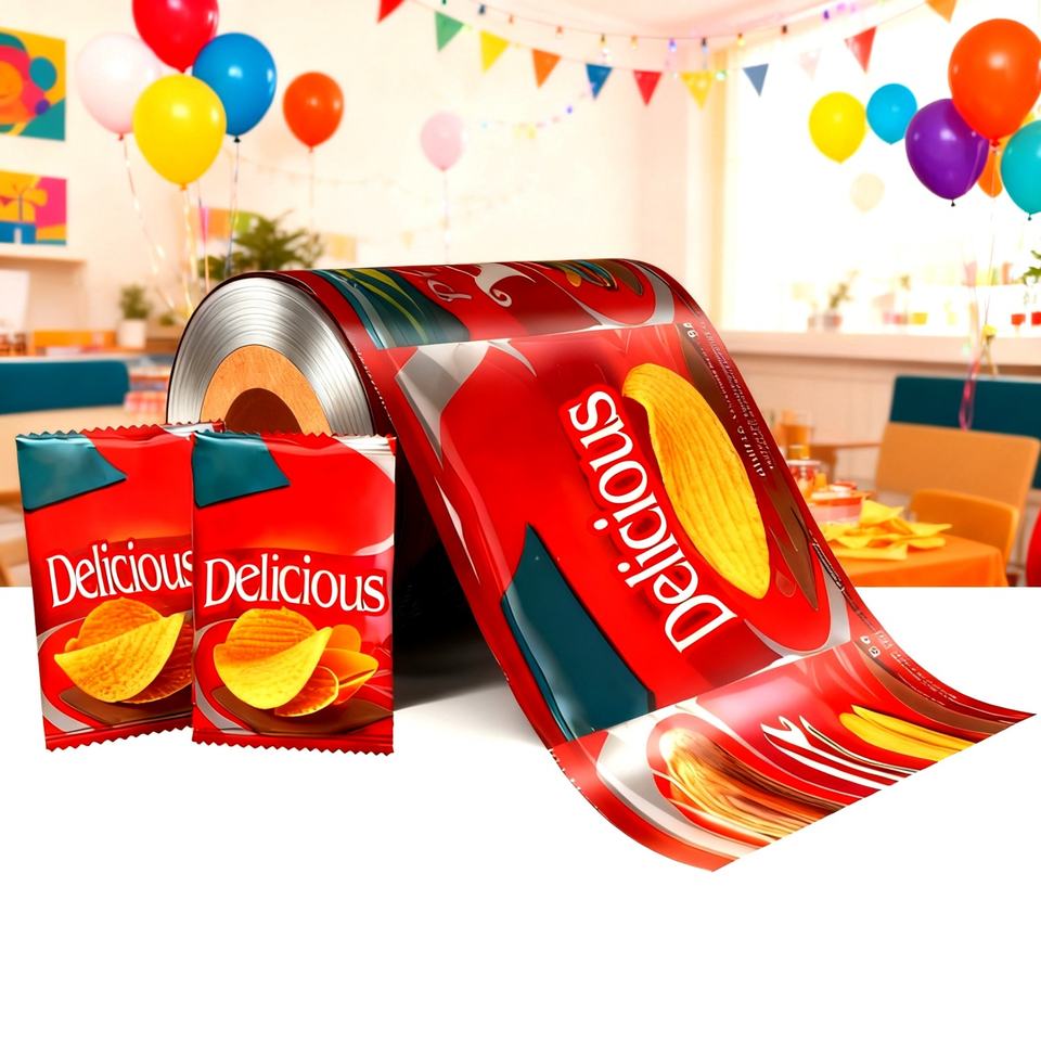 ฟิล์มบรรจุภัณฑ์อาหารอลูมิเนียมฟอยล์พิมพ์ลายตามสั่ง/ฟิล์มพลาสติกลามิเนตแบบซองสำหรับบรรจุขนมขบเคี้ยวแบบม้วน รับผลิตแบบ OEM/ODM