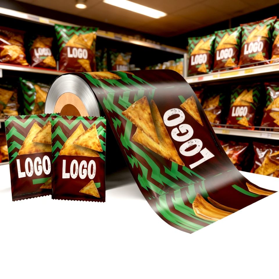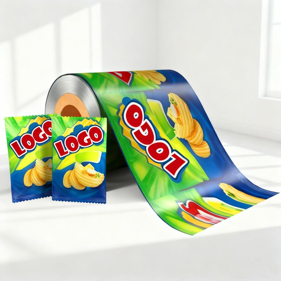 ฟิล์มบรรจุภัณฑ์อาหารเคลือบอลูมิเนียมฟอยล์พิมพ์ลายตามสั่ง ม้วนฟิล์มพลาสติกสำหรับบรรจุขนมขบเคี้ยวมันฝรั่งทอด