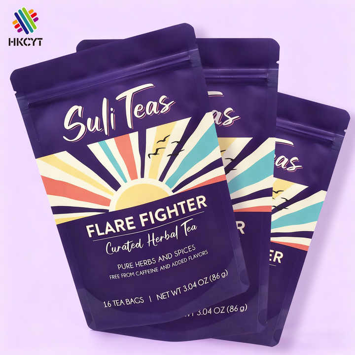 ถุงซิปอลูมิเนียมฟอยล์พิมพ์แบบกำหนดเอง-ถุงยืนขึ้นนำมาใช้ใหม่สำหรับชาสมุนไพรคุกกี้และขนมขบเคี้ยว (ถุงกระดาษคราฟท์สีขาว)