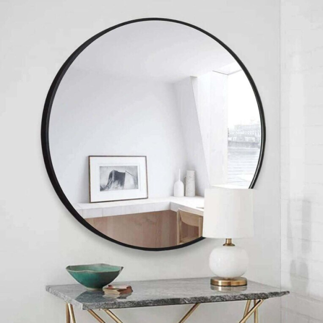 กระจกติดผนังพิมพ์ลายอาเธอร์แบบกำหนดเองศิลปะการตกแต่งบ้านสมัยใหม่ศิลปะโบราณสีดำการออกแบบเหล็กที่ได้รับแรงบันดาลใจจากความรักของขวัญในห้องน้ำ