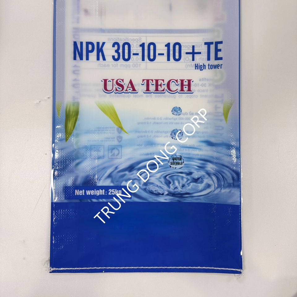 ถุงปุ๋ยรีไซเคิลผ้า PP พิมพ์ลายตารางทำจากเวียดนามมีคุณสมบัติเปิดและจัดการได้ง่าย