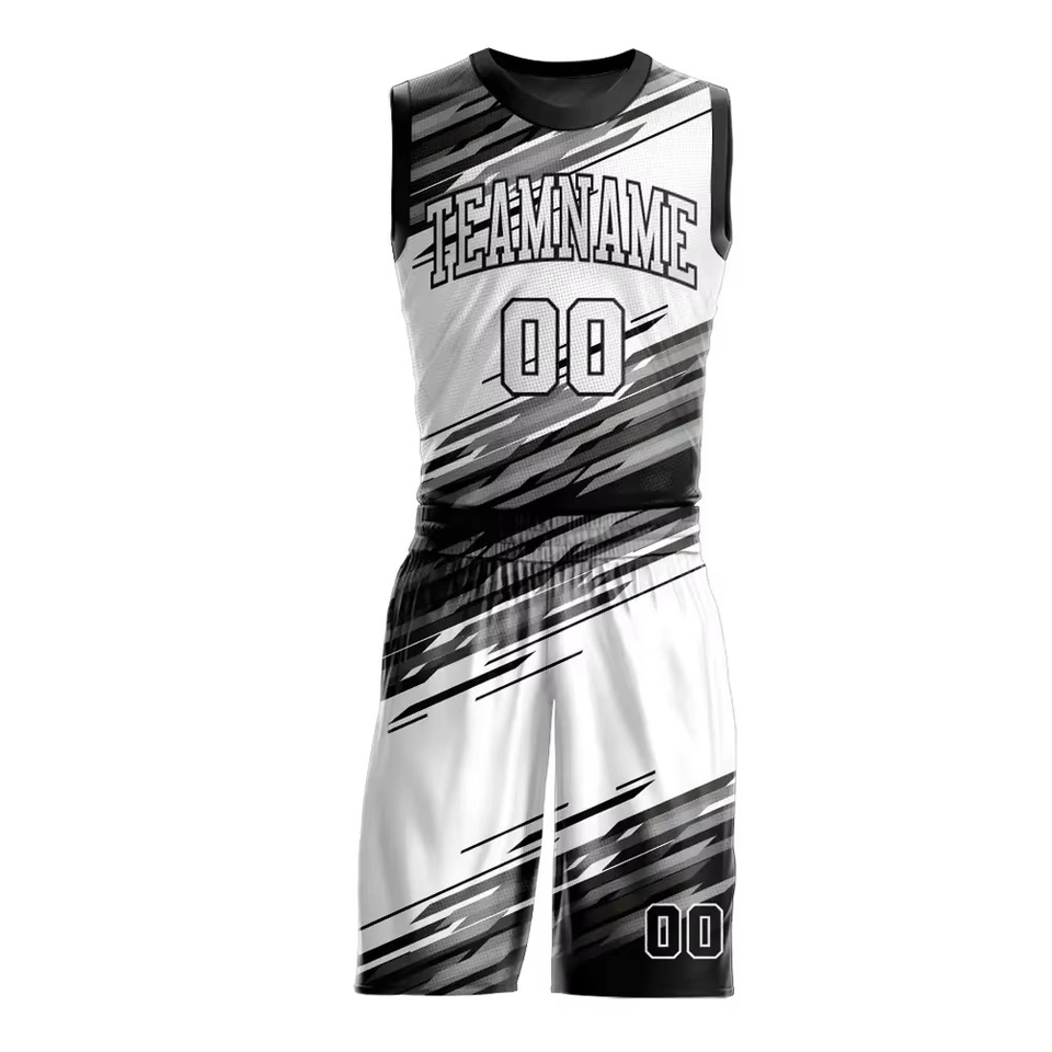 ชุดทีมบาสเก็ตบอลพิมพ์ลายตามสั่ง ผ้าโพลีเอสเตอร์ 100% ระบายเหงื่อได้ดี ซับเหงื่อ แห้งไว มีไซส์พลัส รับสกรีนโลโก้ตามสั่ง
