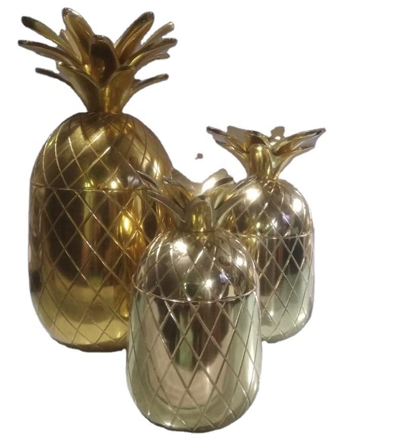 รูปปั้นทองเหลืองสับปะรดที่สวยงามพิมพ์แบบกำหนดเองสแตนเลสขัดเงาอลูมิเนียมสำหรับบนโต๊ะอาหารอะนิเมะของขวัญโลหะ