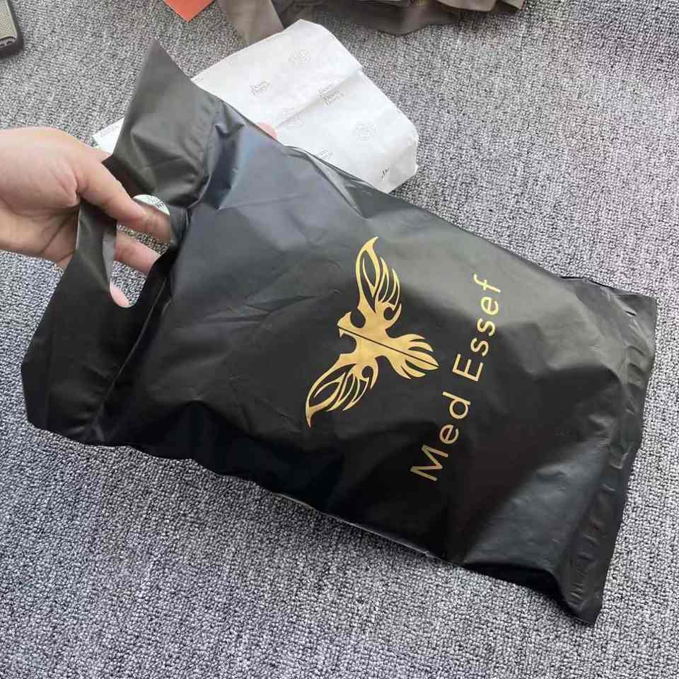 ถุงพลาสติกโพลีเมลเลอร์สีดำพิมพ์ลายตามสั่ง สำหรับส่งพัสดุไปรษณีย์ พร้อมหูหิ้ว สำหรับบรรจุภัณฑ์ช้อปปิ้งและจัดส่ง