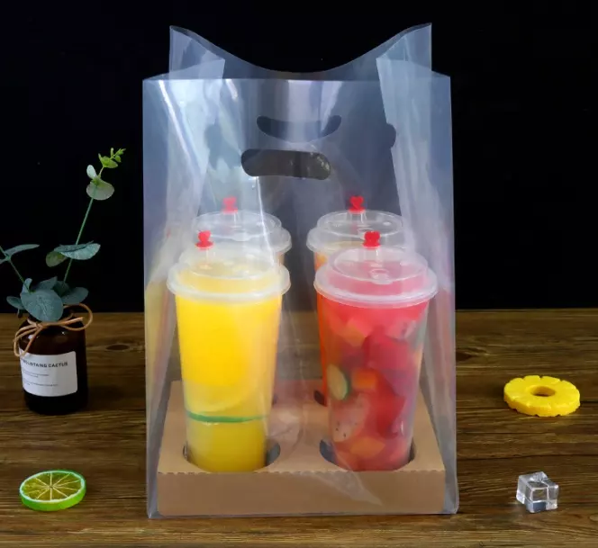ชา Boba พิมพ์แบบกําหนดเองถุงบรรจุภัณฑ์ถุงช้อปปิ้งพลาสติกอาหารใส PE Milka ยอมรับย่อยสลายได้ทางชีวภาพทิ้ง