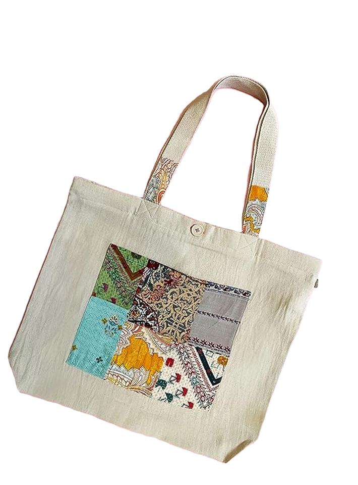 Custom Printed Bohemian XL Tote Handbag Reusable Organic Eco-Friendly Cotton Canvas Featuring Letter Decoration Self-Handle
