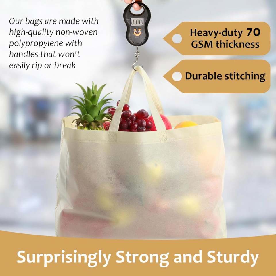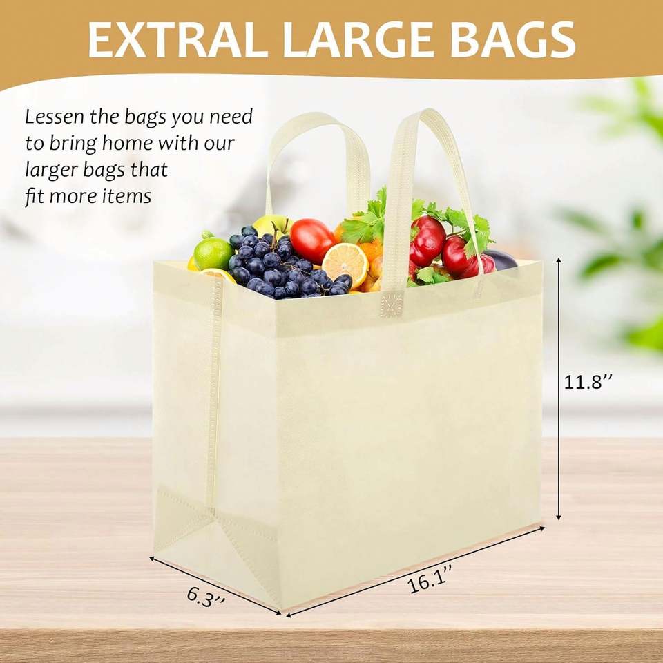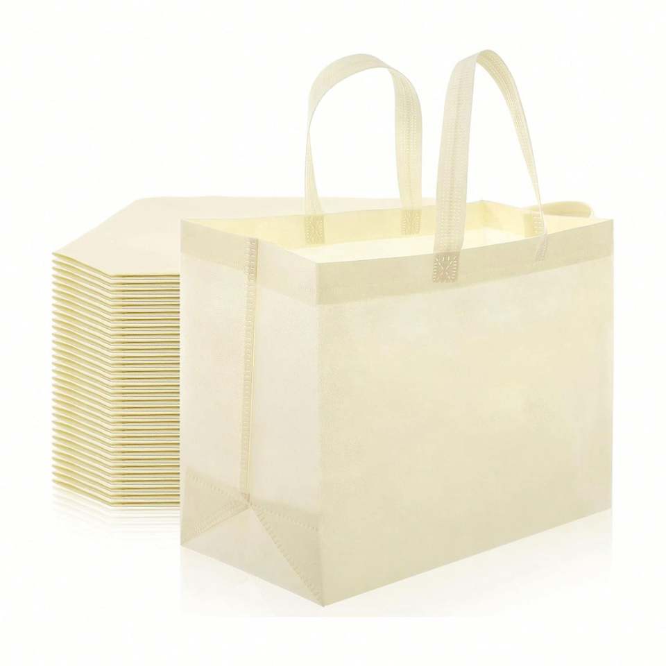 ถุงช้อปปิ้งผ้ารีไซเคิลสีเบจขนาดใหญ่แบบสั่งพิมพ์ลายสำหรับร้านค้าบูติก ใช้ซ้ำได้