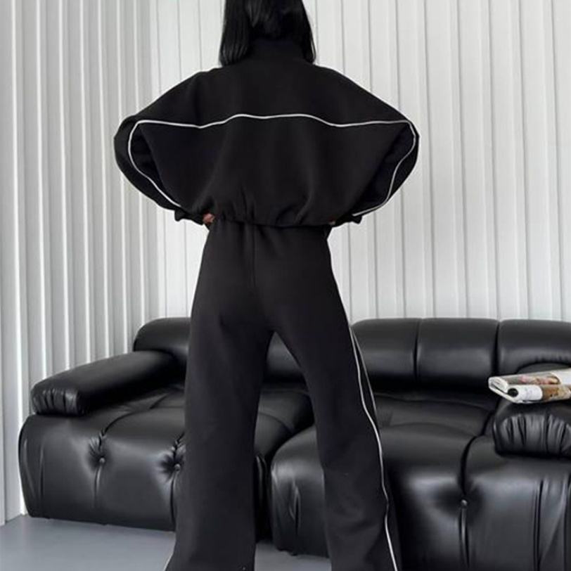 ชุดวอร์มพิมพ์ลายตามสั่ง ระบายอากาศได้ดี ทรงหลวมสำหรับผู้หญิง ผลิตจากโพลีเอสเตอร์ 100% เสื้อฮู้ดแบบซิป กางเกงวอร์มขาบาน แต่งดีเทลขาดๆ