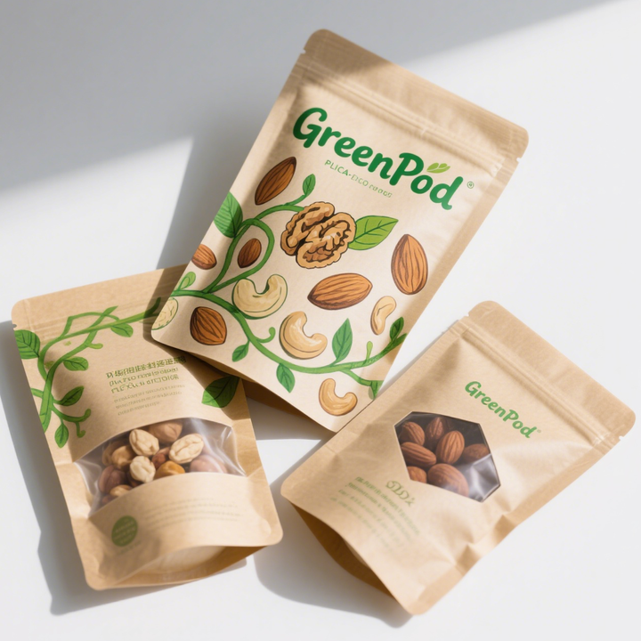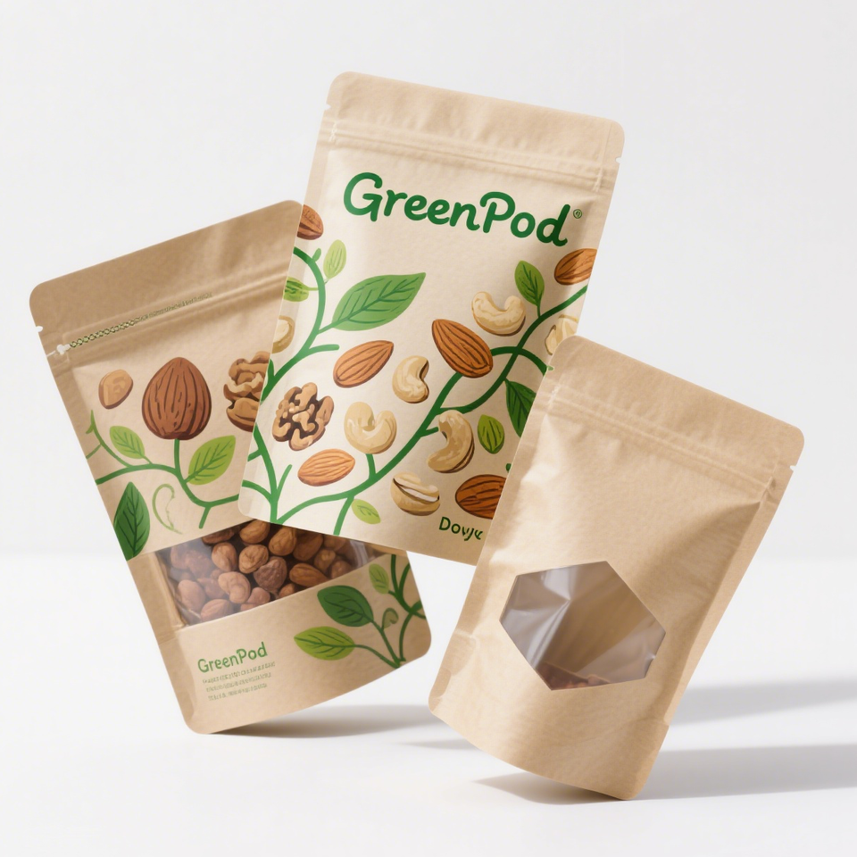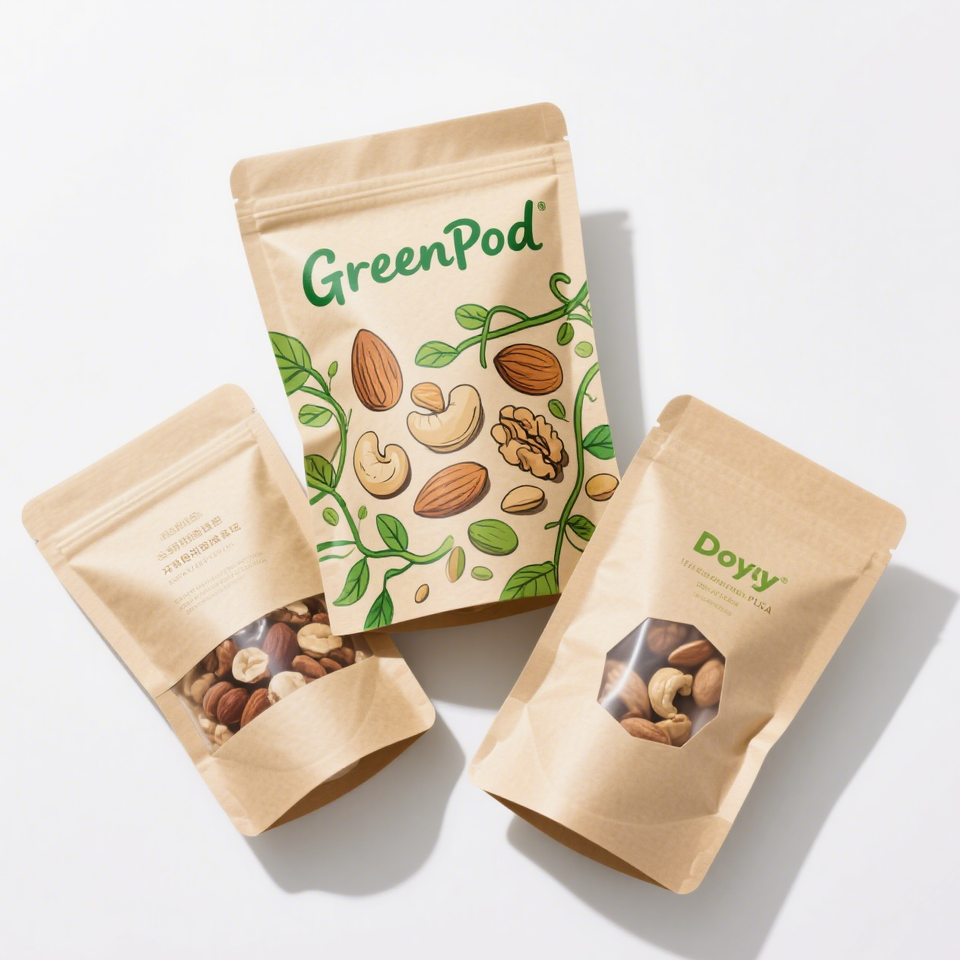 ถุงเก็บอาหารพับเก็บได้มีซิปล็อกสีน้ำตาลกระดาษคราฟท์มีซิปล็อคกันความชื้นพิมพ์ลายแบบกำหนดเอง