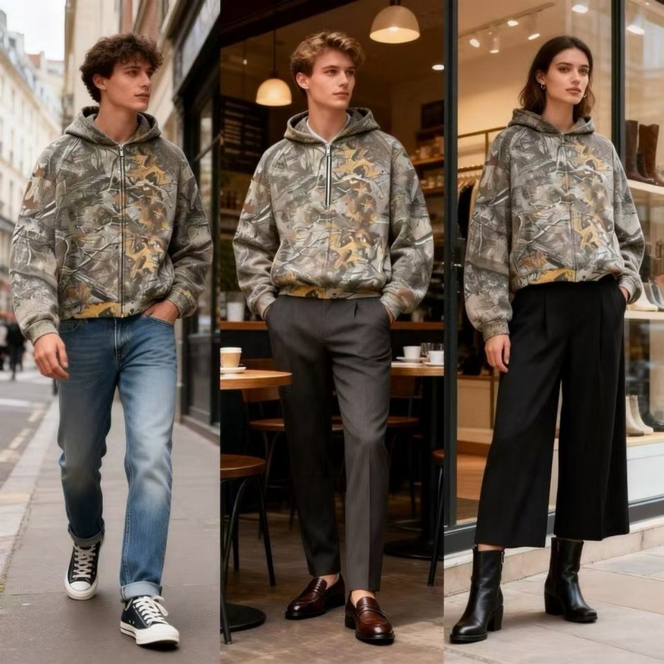 เสื้อฮู้ดลายพรางพิมพ์ลายตามสั่งสำหรับผู้ชาย เสื้อฮู้ดลายพรางแบบยาวสำหรับฤดูหนาว เสื้อฮู้ดลายต้นไม้
