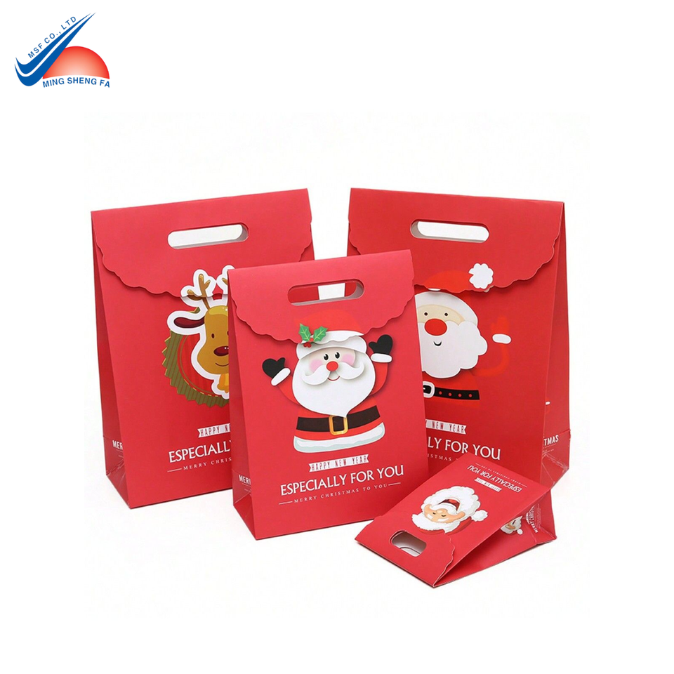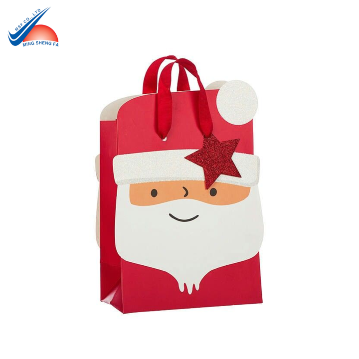กระเป๋าช้อปปิ้งกระดาษคริสต์มาสพิมพ์ลายแบบกำหนดเองพร้อมการเคลือบมันดีไซน์ซานตาคลอสเทศกาล