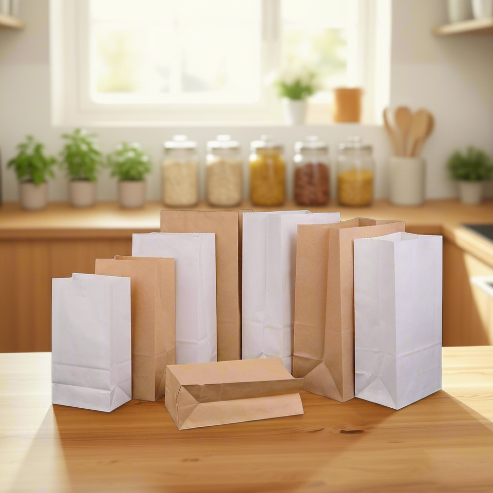 ถุงกระดาษคราฟท์พิมพ์ลายตามสั่ง ผลิตจากวัสดุรีไซเคิล พร้อมหูหิ้ว สร้างแบรนด์บรรจุภัณฑ์ของคุณด้วยโลโก้ สำหรับตลาดเกษตรกรและร้านขายสินค้าออร์แกนิก