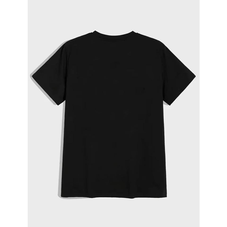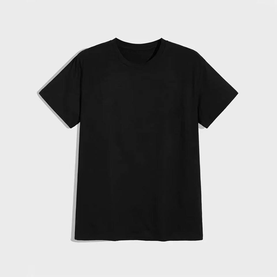 เสื้อยืดคอตตอนผสมโพลีเอสเตอร์สีดำเข้ม พิมพ์ลายตามสั่ง แบบเรียบ ซับลิเมชั่น ป้องกันขนร่วง แขนสั้น ทรงหลวม สวมใส่สบาย น้ำหนัก 220 กรัม