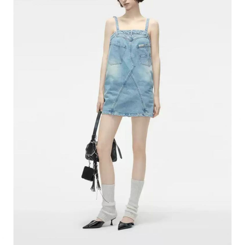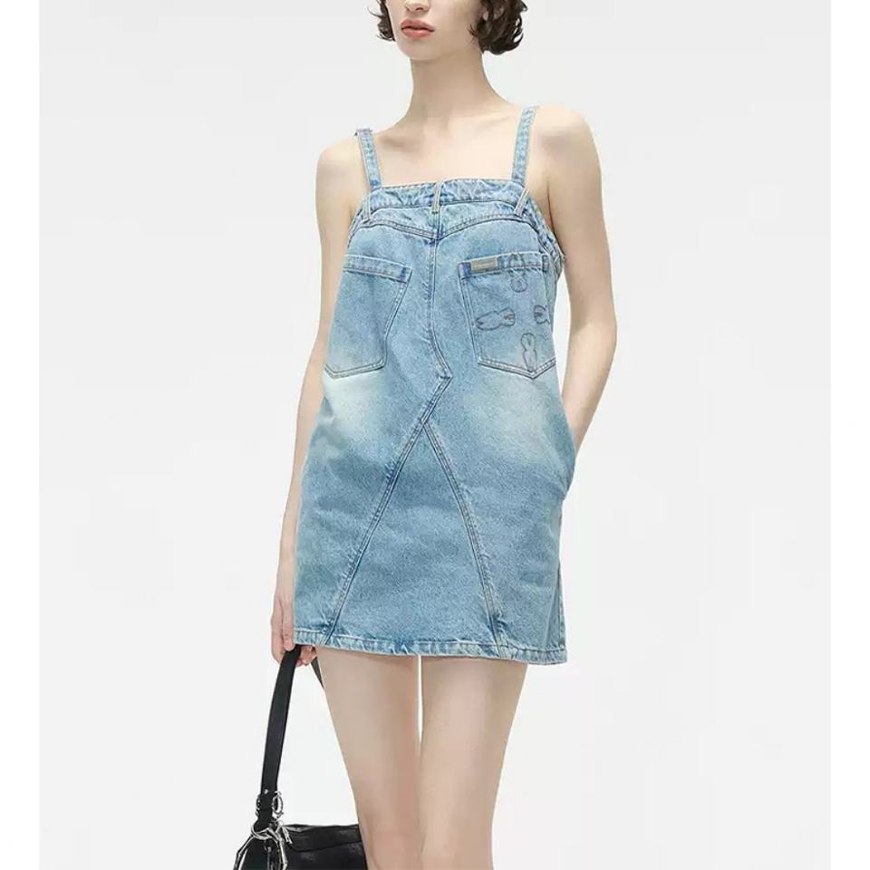 เดรสยีนส์สายเดี่ยวพิมพ์ลายตามสั่งสำหรับผู้หญิง สไตล์วินเทจ ลุคสกินนี่ ทรงหลวม ไม่มีแขน