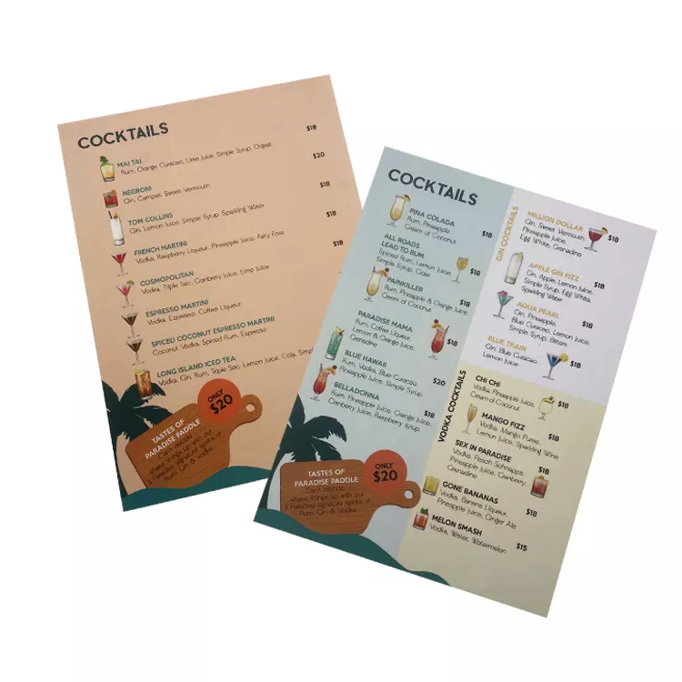 Keyword:PVC Plastic Restaurant Menu card