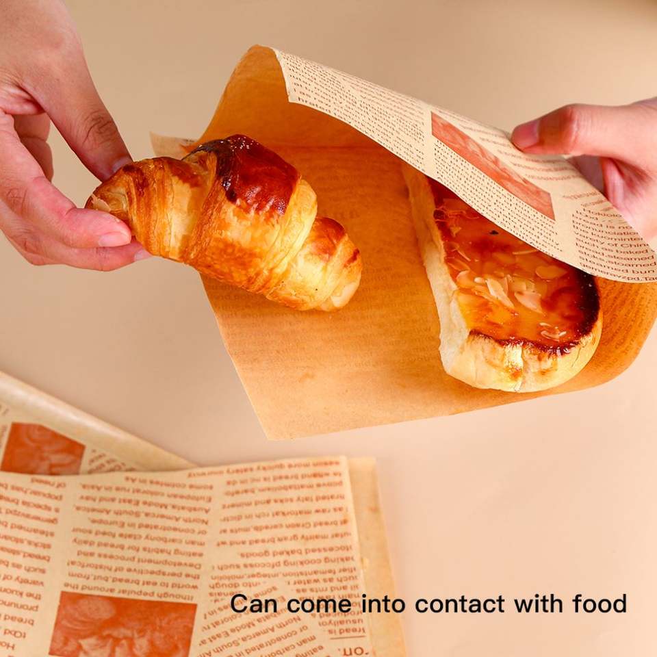 ถุงกระดาษพิมพ์ลายเอง แบบเปิดสองด้าน กันน้ำมัน กันไขมัน สำหรับขนมปัง วาฟเฟิล เบอร์เกอร์ แซนวิช โดนัท รูปทรงตัวแอล รูปสามเหลี่ยม