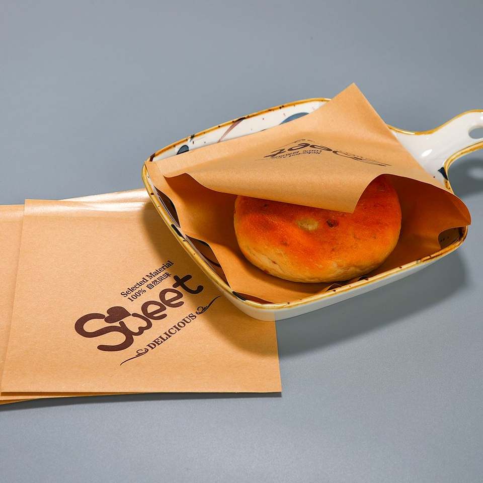 ถุงกระดาษพิมพ์ลายเอง แบบเปิดสองด้าน กันน้ำมัน กันไขมัน สำหรับใส่ขนมปัง วาฟเฟิล เบอร์เกอร์ แซนวิช โดนัท รูปทรงสามเหลี่ยม