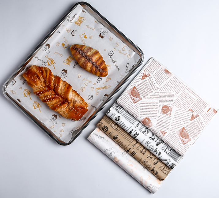 กระดาษห่ออาหารเคลือบกันไขมันพิมพ์ลายสองด้านสำหรับแฮมเบอร์เกอร์ แซนวิช คุกกี้ ขนมปัง และเค้ก