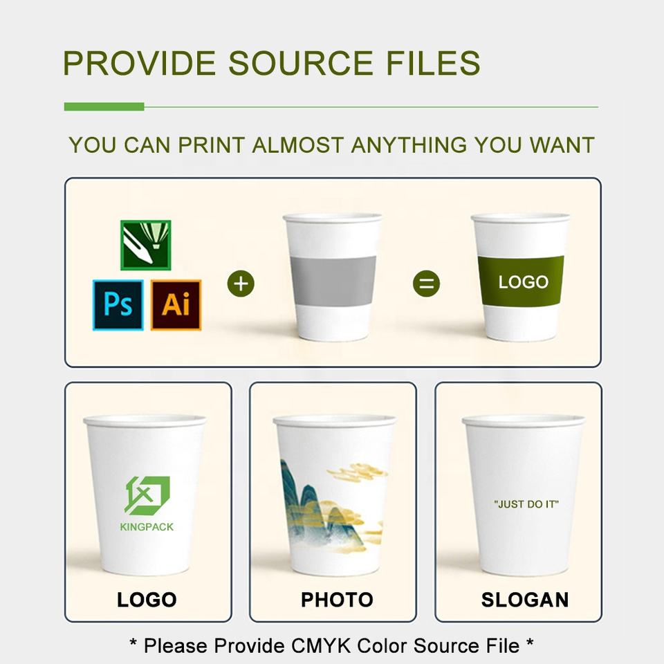 แก้วกระดาษแบบใช้ครั้งเดียวพิมพ์ลายได้เอง เป็นมิตรกับสิ่งแวดล้อม ย่อยสลายได้ ผนังเดี่ยว สำหรับกาแฟ พร้อมฝาปิดกันรั่ว สำหรับงานปาร์ตี้และซื้อกลับบ้าน