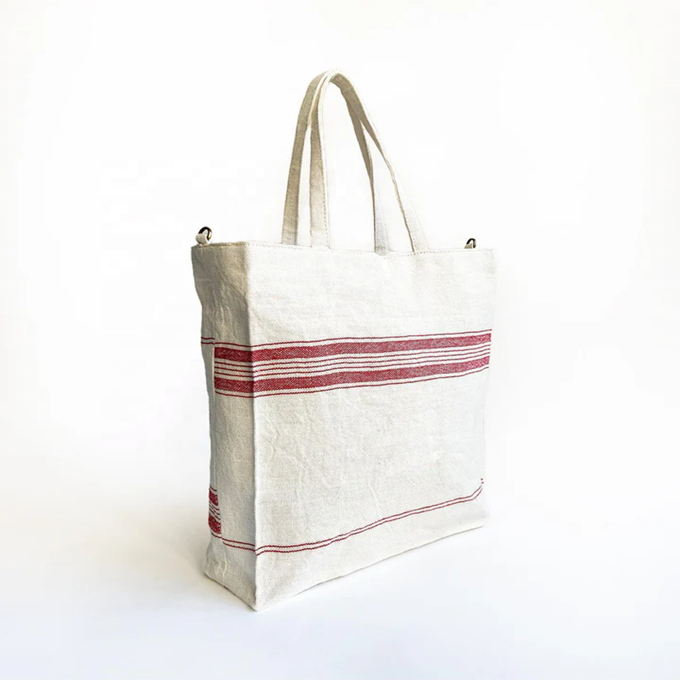 กระเป๋าช้อปปิ้งผ้ากระสอบป่านพิมพ์ลายตามสั่ง เป็นมิตรกับสิ่งแวดล้อม พร้อมหูหิ้วหนัง ปิดด้วยซิป ลายตัวอักษร ใช้ได้ทุกวัน
