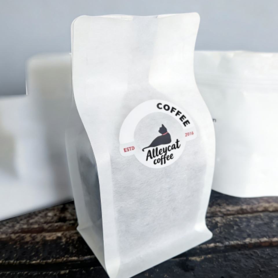 ถุงกาแฟแบบก้นแบนพิมพ์ลายตามสั่ง ผลิตจากวัสดุรีไซเคิลรักษ์โลก น้ำหนัก 250 กรัม 500 กรัม 1 กิโลกรัม ถุงกระดาษฝ้ายแบบมีวาล์วสำหรับบรรจุเมล็ดกาแฟและเยลลี่