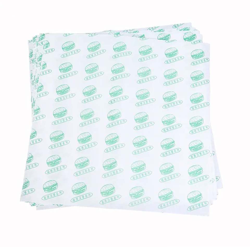 ถาดเสิร์ฟอาหารจานด่วนแบบพิมพ์ลายเอง กระดาษห่ออาหารกันน้ำมัน สำหรับห่อเบอร์เกอร์ แซนวิช และเฟรนช์ฟรายส์