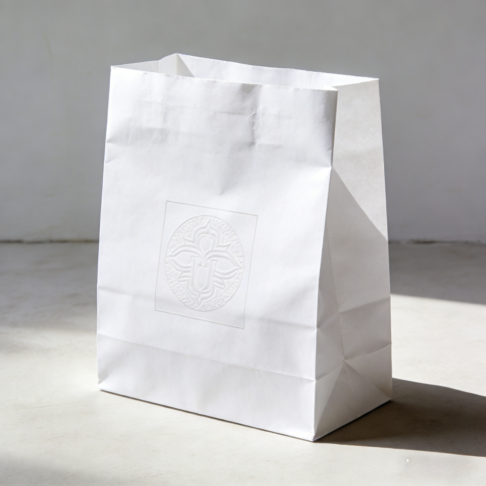 ถุงกระดาษแก้วกันไขมันสำหรับอาหารแบบคลาสสิก พิมพ์ลายดิจิตอลเฟล็กโซตามสั่ง พร้อมแถบกาวปิดผนึกในตัว
