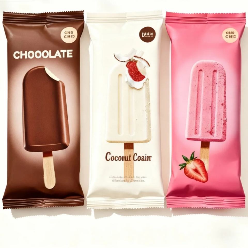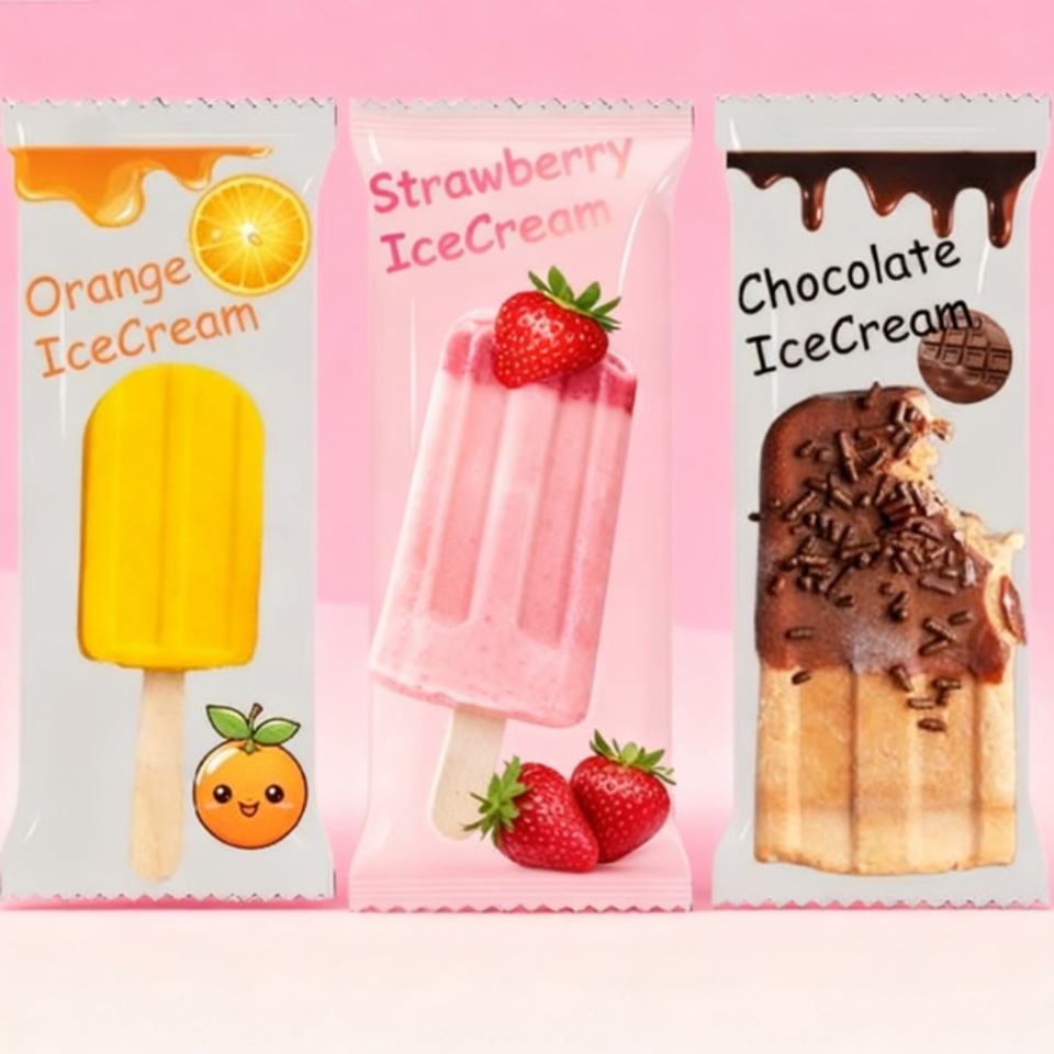 บรรจุภัณฑ์พลาสติกสำหรับไอศกรีมแบบพิมพ์ลายตามสั่ง เกรดสำหรับอาหาร บรรจุภัณฑ์แบบปิดผนึกด้านหลังสำหรับอาหารแช่แข็ง ถุงใส่ไอศกรีมแท่งสำหรับหมากฝรั่ง รับผลิตแบบ OEM