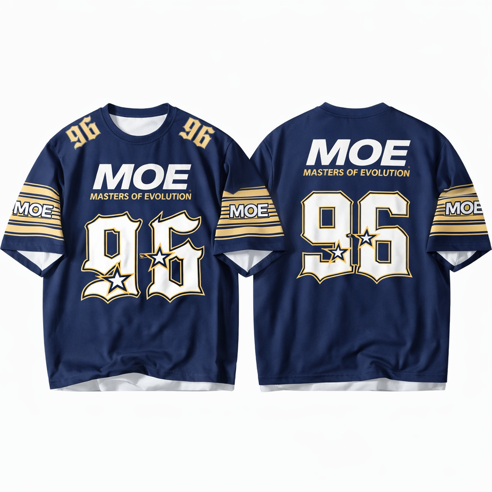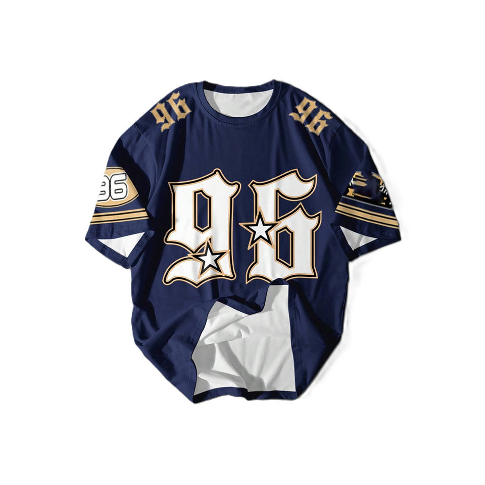 เสื้อทีมพิมพ์ลายตามสั่ง หมายเลขสีทอง แขนเสื้อลายแถบคู่ ทรงพอดีตัว สำหรับอเมริกันฟุตบอล ผลิตแบบ OEM จำนวนมาก คุณภาพพรีเมียม