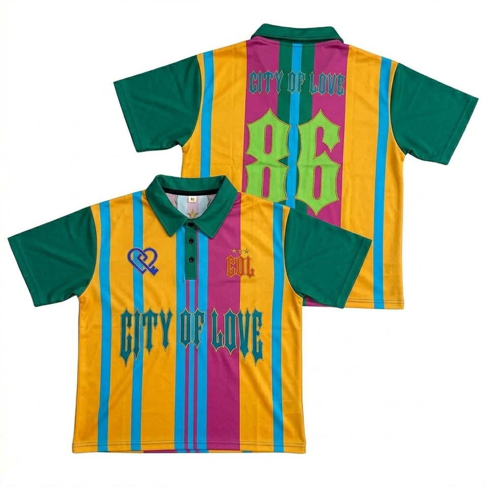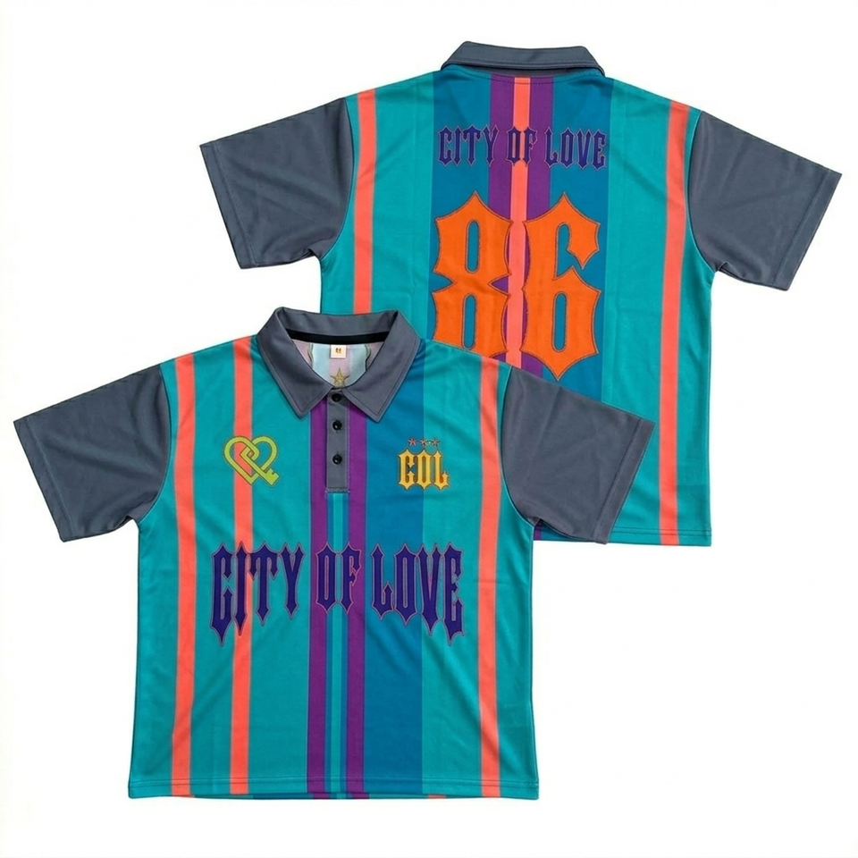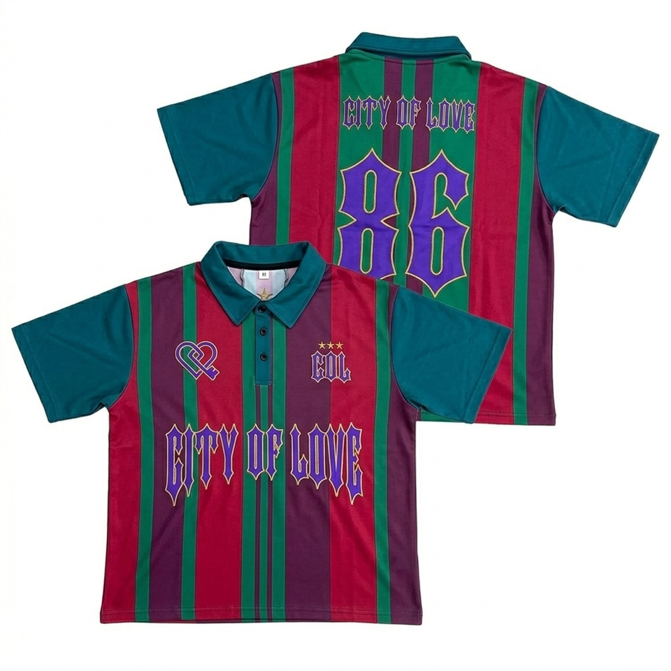 ตำแหน่งโลโก้:ด้านหน้า, ด้านหลัง, แขนเสื้อด้านซ้าย, แขนเสื้อด้านขวา, ขอบล่าง, หลังคอ