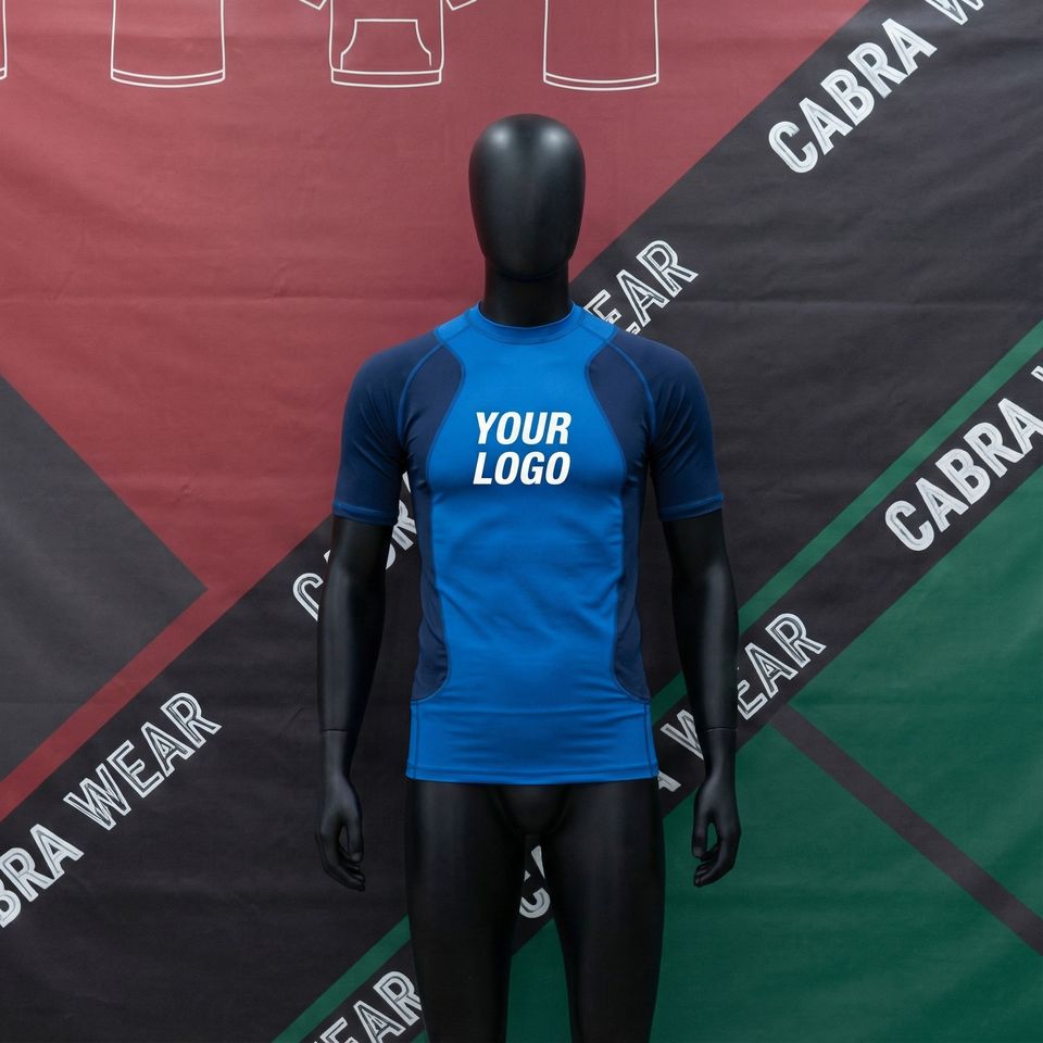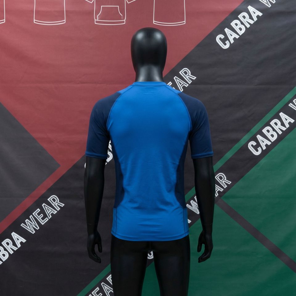 เสื้อรัดกล้ามเนื้อแขนสั้นสำหรับผู้ชาย พิมพ์ลายด้วยความร้อน ป้องกันแสงแดด UPF50 ผลิตจากโพลีเอสเตอร์ 100% น้ำหนัก 240 กรัม เหมาะสำหรับการฝึกซ้อมเป็นทีม