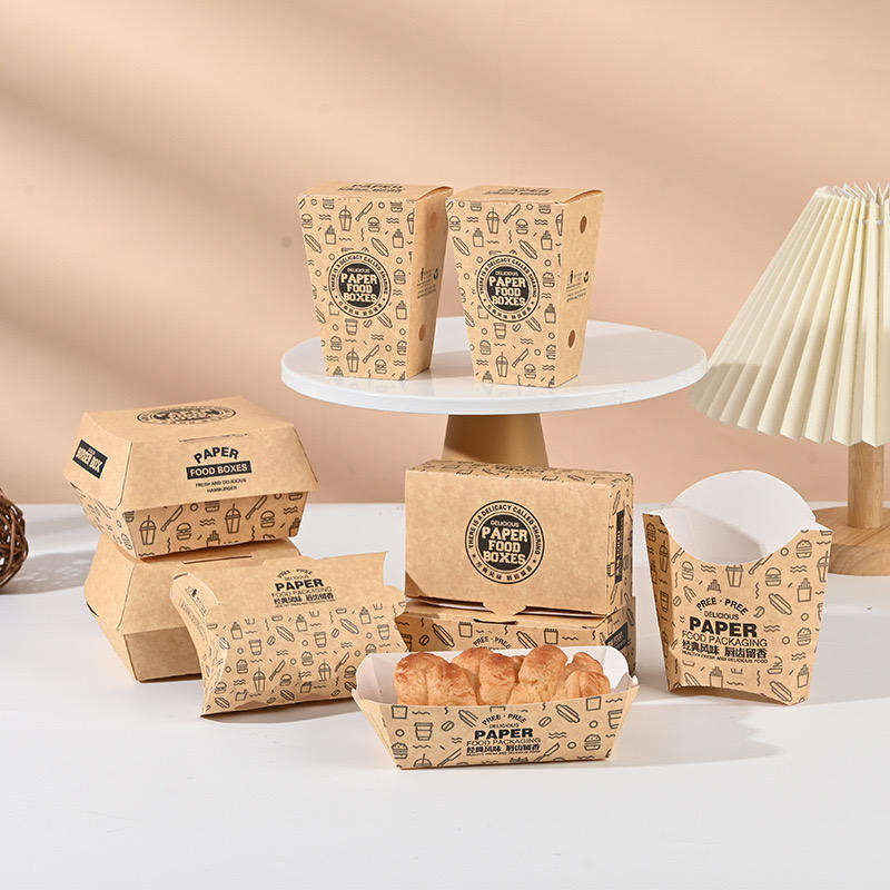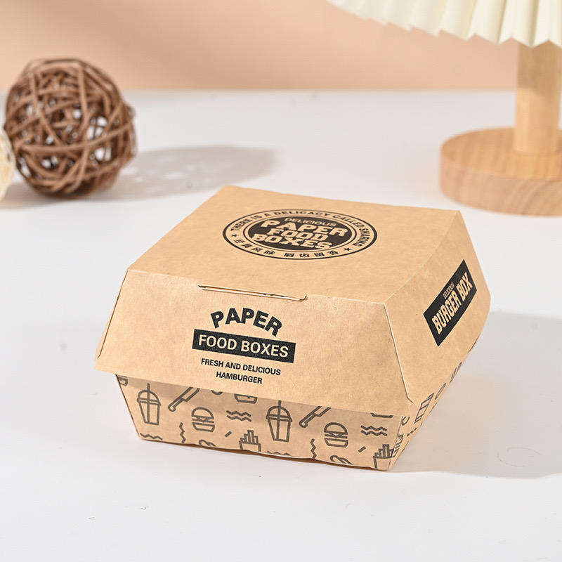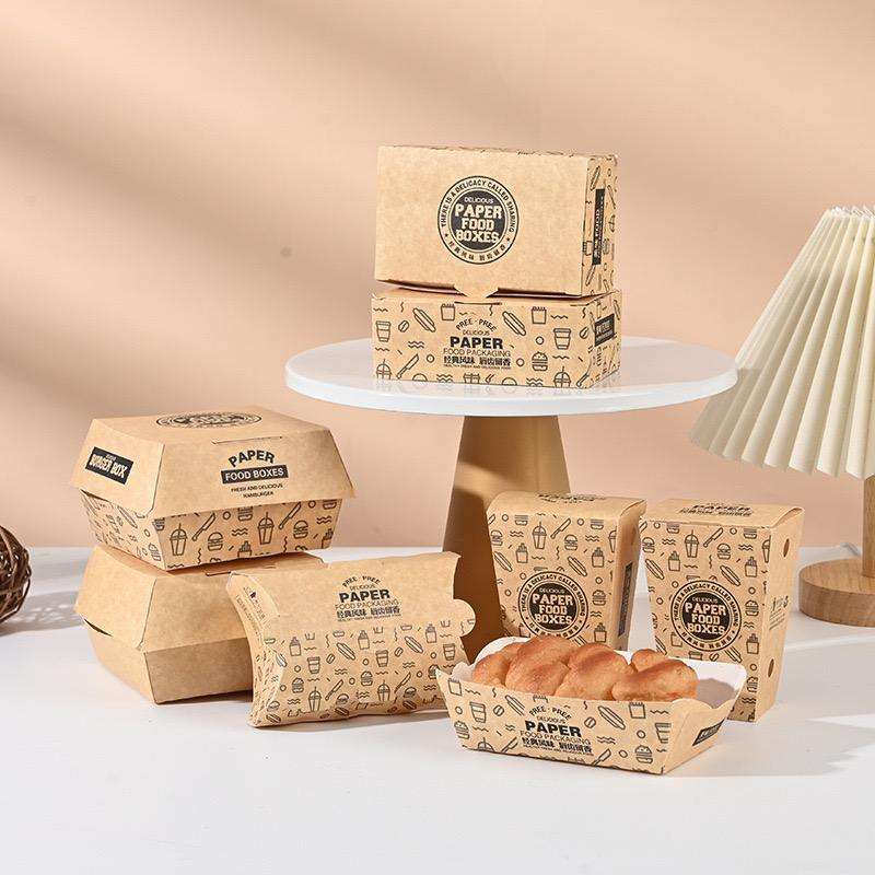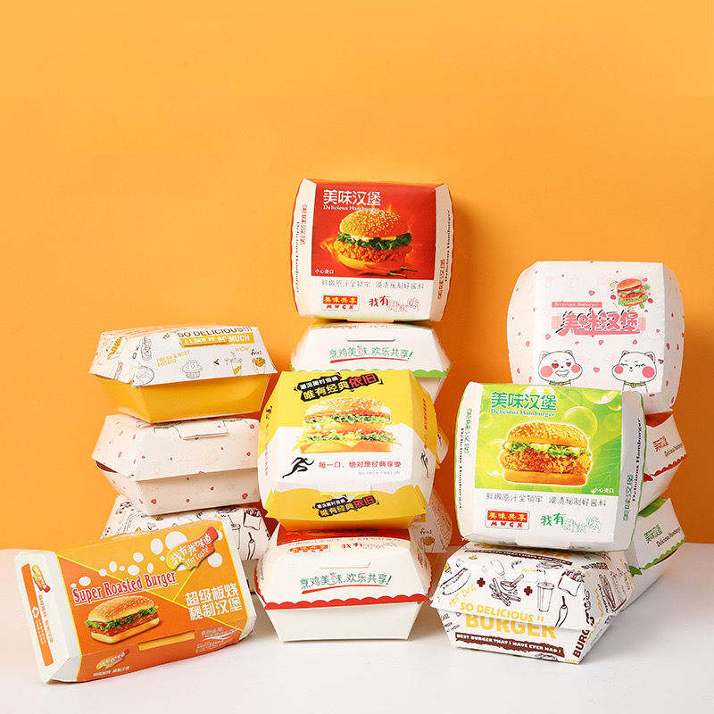 กล่องเบอร์เกอร์พิมพ์ลายตามสั่ง เกรดอาหาร บรรจุภัณฑ์กระดาษแบบฝาพับ สำหรับอาหารจานด่วนและอาหารแบบนำกลับบ้าน