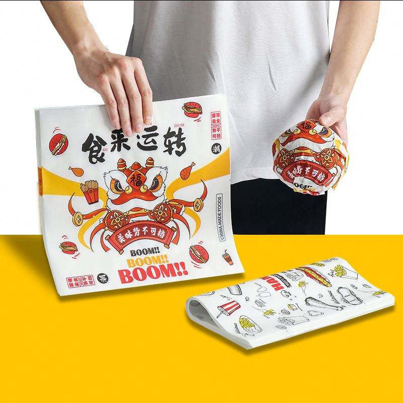 กระดาษห่ออาหารเคลือบ PE กันไขมัน พิมพ์ลายตามสั่ง สำหรับเค้ก ช็อกโกแลต เบอร์เกอร์ แซนวิช พร้อมโลโก้