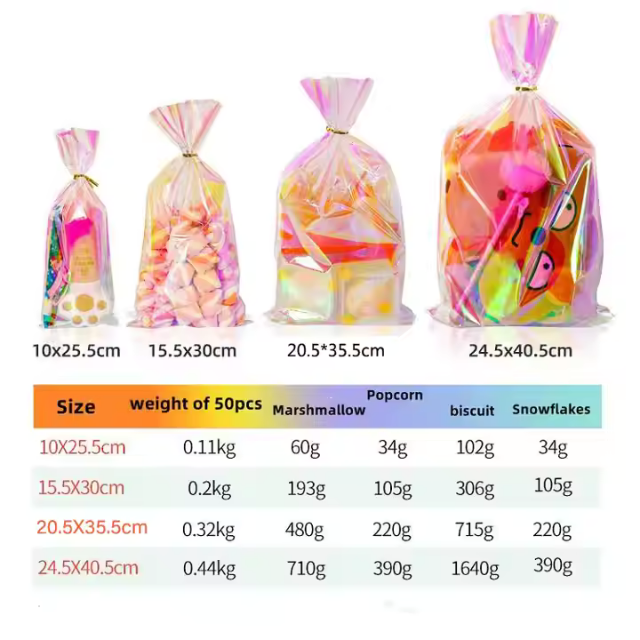 ถุงขนมสีรุ้งทำจาก PE พิมพ์ลายได้ตามต้องการมีสายสัมพันธ์สำหรับของขวัญวันเกิดวันฮาโลวีนวันคริสต์มาสอีสเตอร์