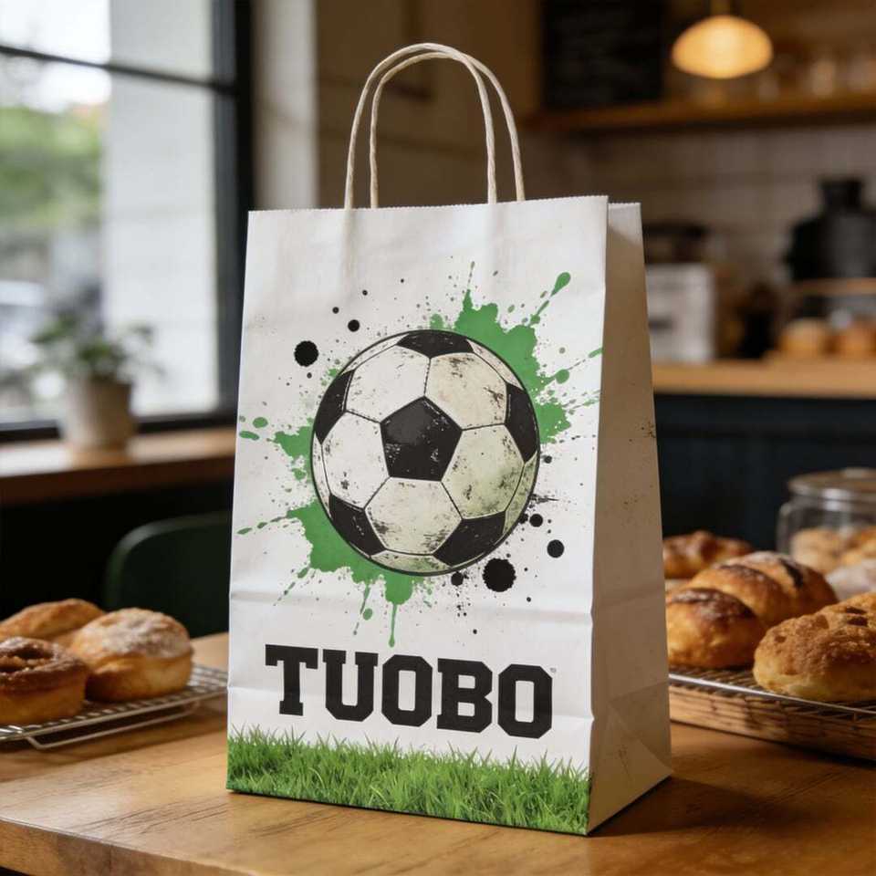 ถุงกระดาษคราฟท์พิมพ์ลายตามสั่ง พร้อมหูหิ้วเชือกฝ้าย บรรจุภัณฑ์สำหรับร้านค้าปลีกสุดหรู พร้อมหูหิ้วหลากหลายแบบ