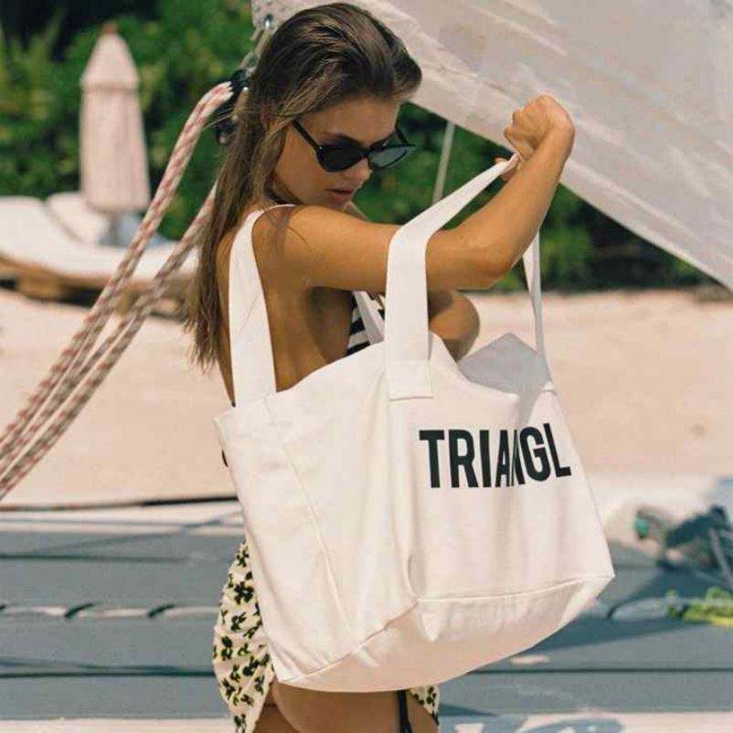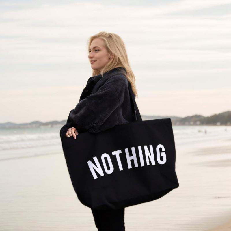 ถุงผ้าแคนวาสพร้อมตัวอักษรพิมพ์โลโก้สีขาวนำกลับมาใช้ใหม่ได้