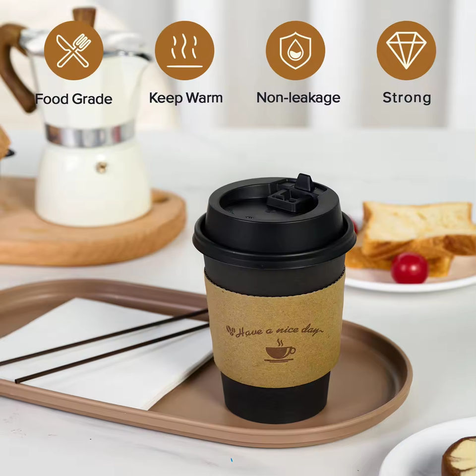ถ้วยกระดาษฟอยล์สีทอง12ออนซ์แบบใช้แล้วทิ้งแก้วกาแฟกระดาษผนังสองชั้นขนาด6ออนซ์สีดำขนาด