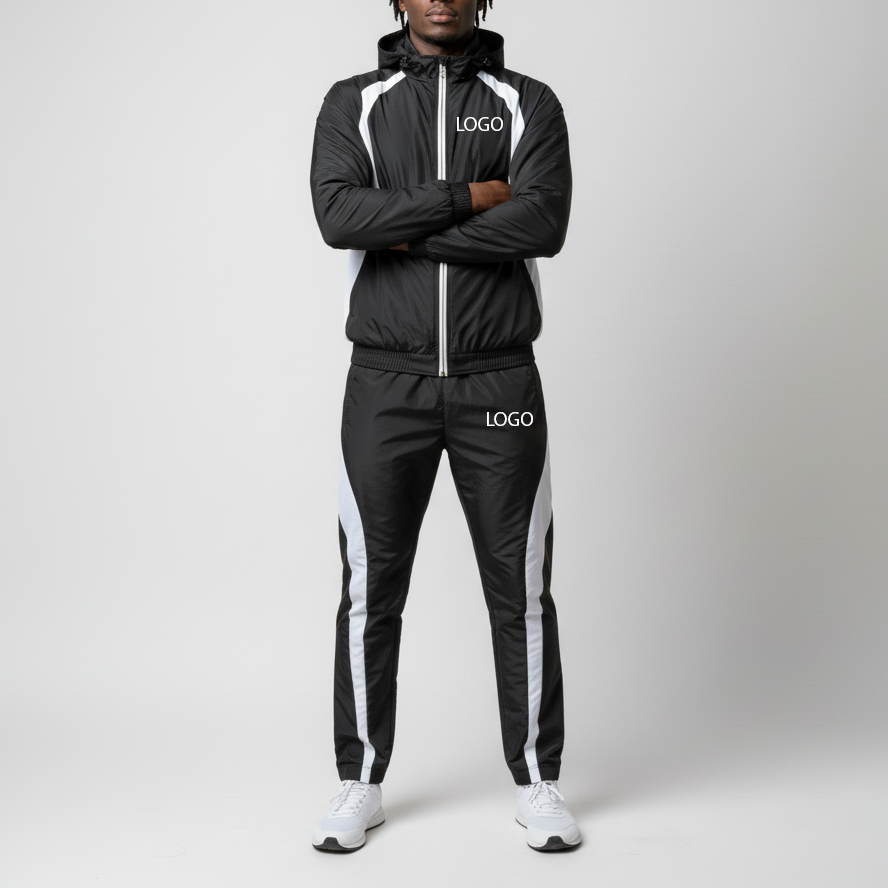ชุดเซ็ตแทรคสูทผู้ชาย 2 ชิ้น พิมพ์โลโก้ตามสั่ง คุณภาพดีที่สุด สำหรับฤดูหนาว มีฮู้ด ซิป ป้องกันลม ระบายอากาศได้ดี สไตล์สตรีทแวร์