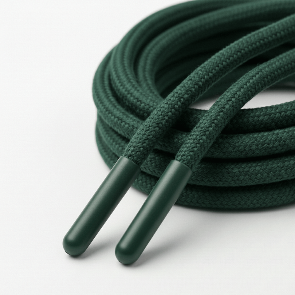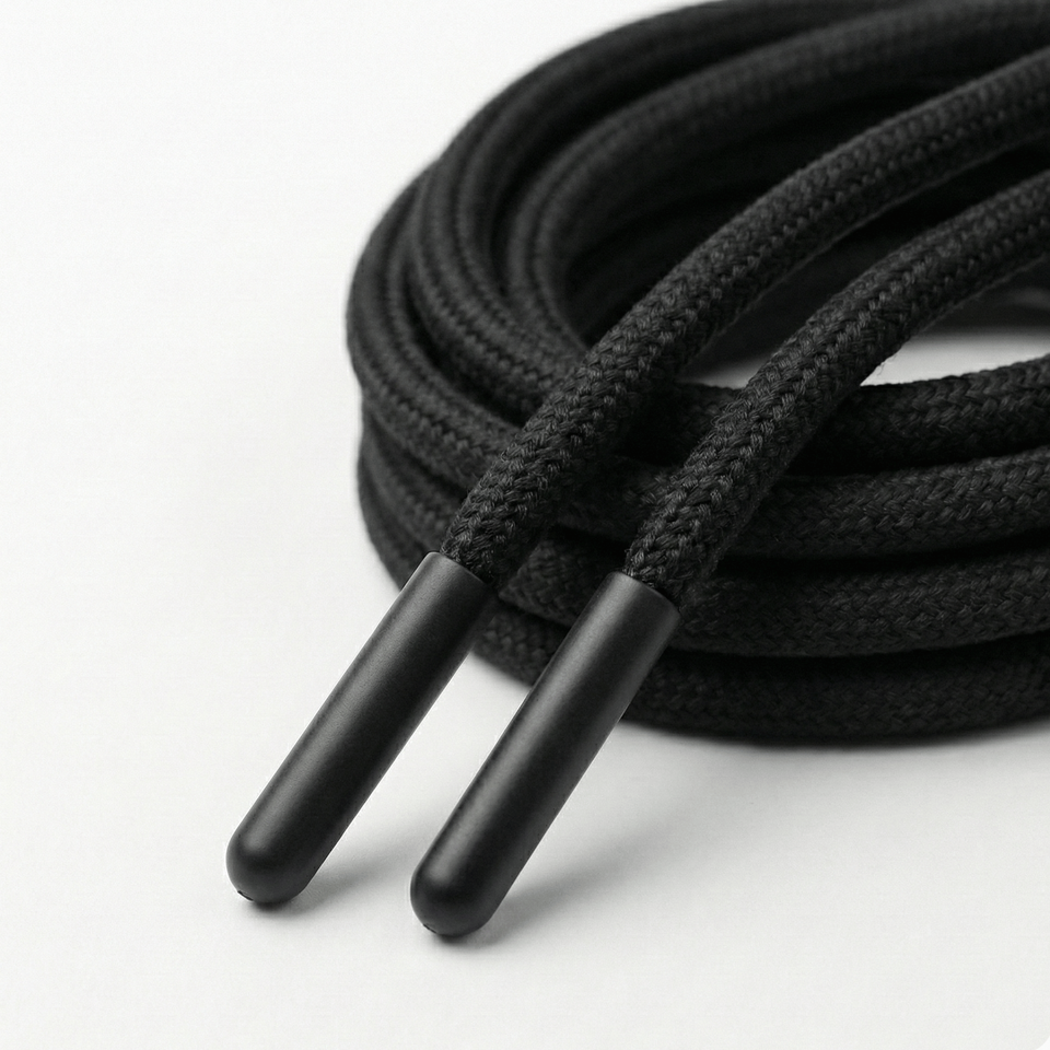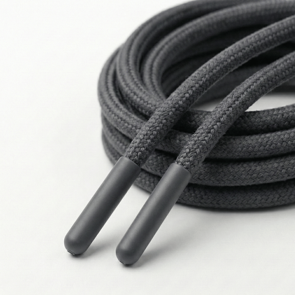 เชือกกลมโพลีเอสเตอร์เคลือบกันน้ำแบบถักลายพิมพ์โลโก้ตามสั่ง เป็นมิตรกับสิ่งแวดล้อม สำหรับกระเป๋า รองเท้า เสื้อผ้า