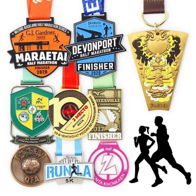 เหรียญเหล็กชุบเคลือบด้วยทองสีบรอนซ์พิมพ์ยูวีโลหะสลักลายโลโก้ที่ระลึกกีฬาแบบกำหนดเอง