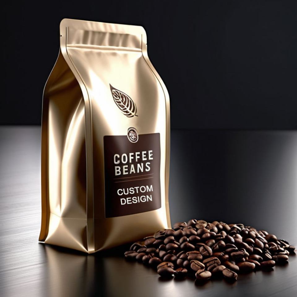 ออกแบบโลโก้พิมพ์ตามสั่ง ถุงซิปล็อคแบบตั้งได้ ขนาด 8 ออนซ์ ป้องกันกลิ่น พร้อมวาล์ว สำหรับบรรจุภัณฑ์กาแฟ