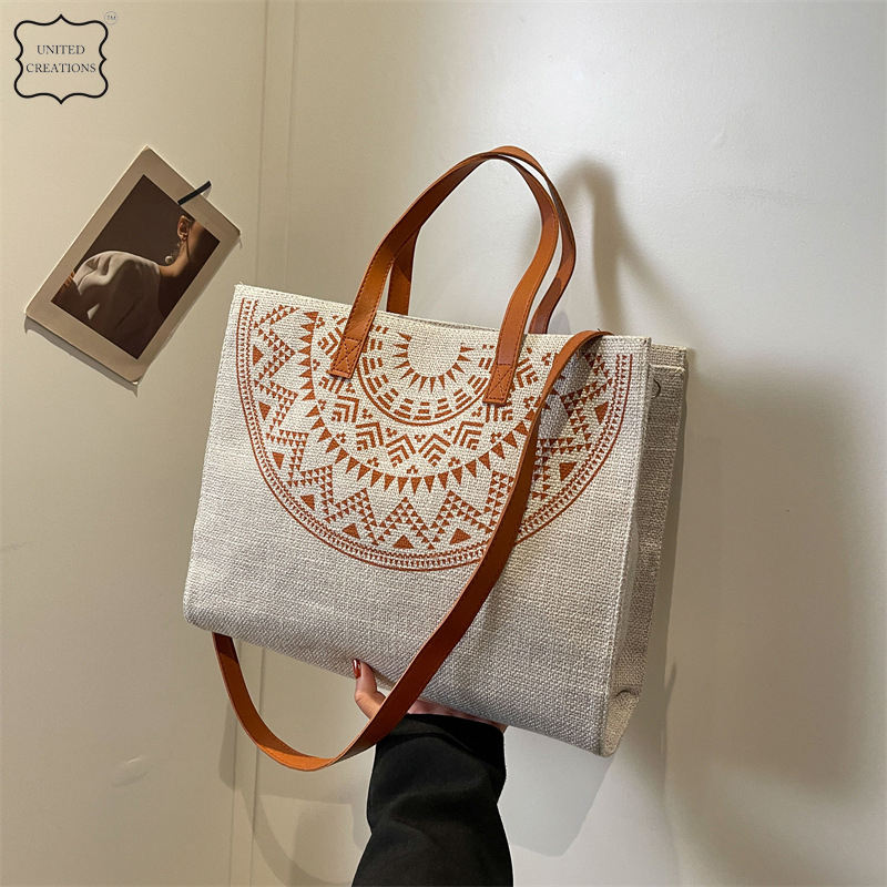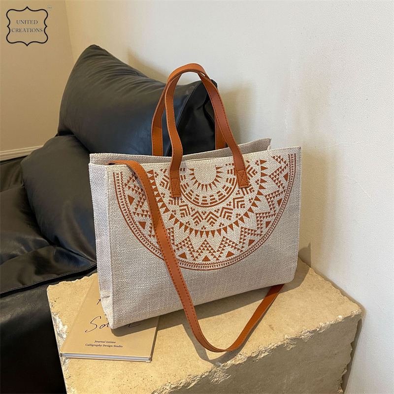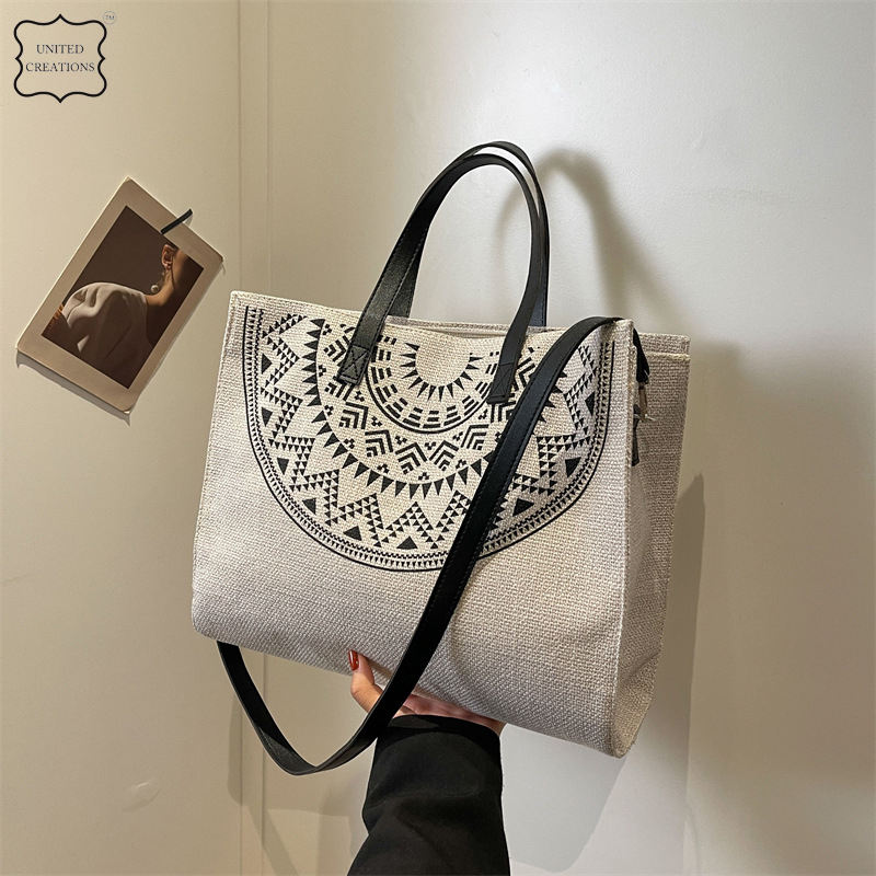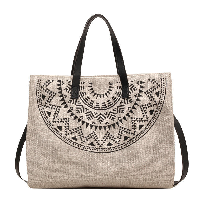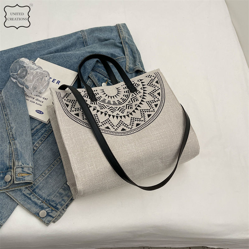 กระเป๋าผ้าใบผ้าฝ้ายสีขาวสำหรับผู้หญิงกระเป๋าสะพายไหล่พิมพ์โลโก้เป็นมิตรกับสิ่งแวดล้อม