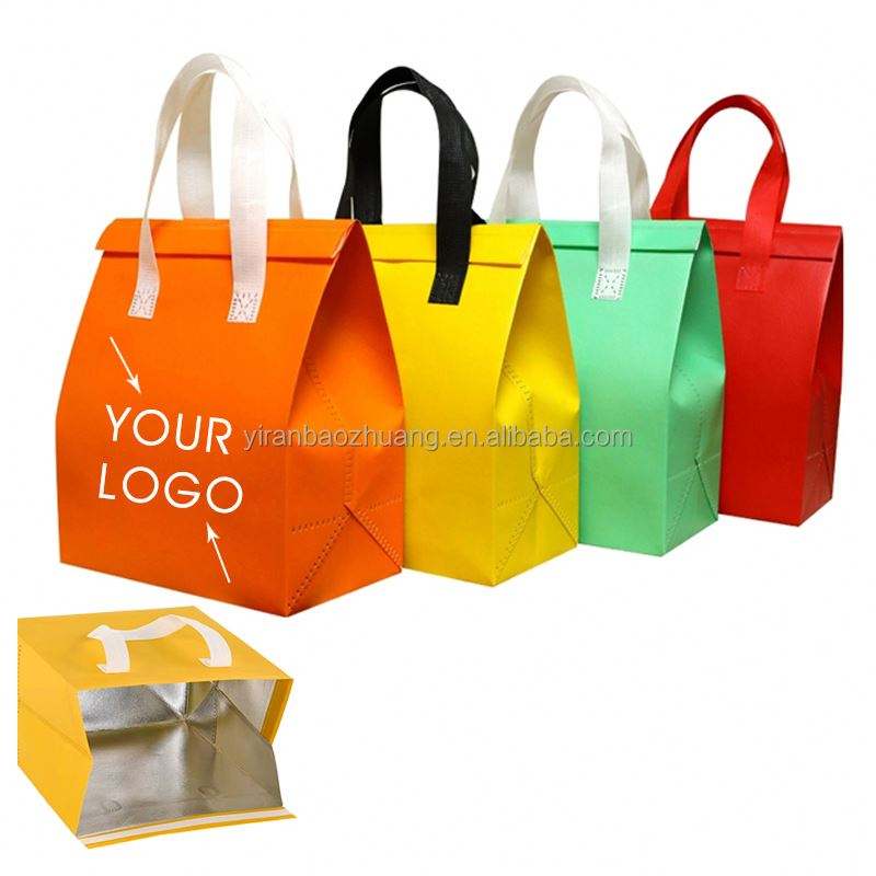 กระเป๋าเก็บความเย็นแบบพิมพ์โลโก้สีชมพู ทำจากผ้าไม่ถักทอ สำหรับใส่อาหารเดลิเวอรี่ ช่วยรักษาความร้อนและความสดของอาหาร