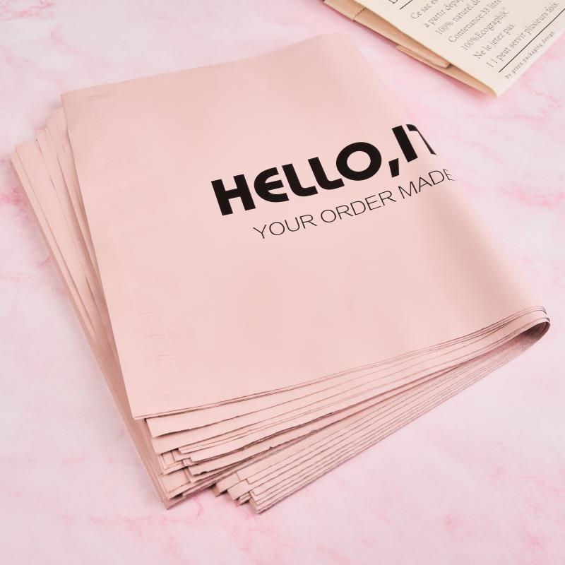 ซองจดหมายพลาสติก PE สีชมพูพิมพ์โลโก้ได้ตามต้องการพร้อมหูจับวัสดุโพลีที่ทนทานการจัดส่งสินค้ากระเป๋าใบปลิวสำหรับบรรจุภัณฑ์