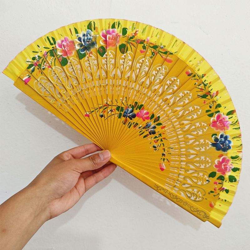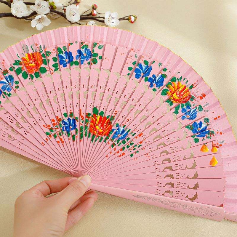 พัดไม้ไผ่พับได้พกพาสะดวก พิมพ์โลโก้ตามสั่ง ลายดอกไม้สีขาว งานศิลปะพื้นบ้านโบราณ ของตกแต่งบ้าน ชุดของขวัญส่งเสริมการขาย
