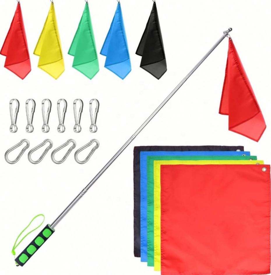 ธงฝึกม้าแบบเสาเหล็กยืดหดได้ พิมพ์โลโก้ตามสั่ง ผ้าโพลีเอสเตอร์ 100% สีสันสดใส สวยงาม